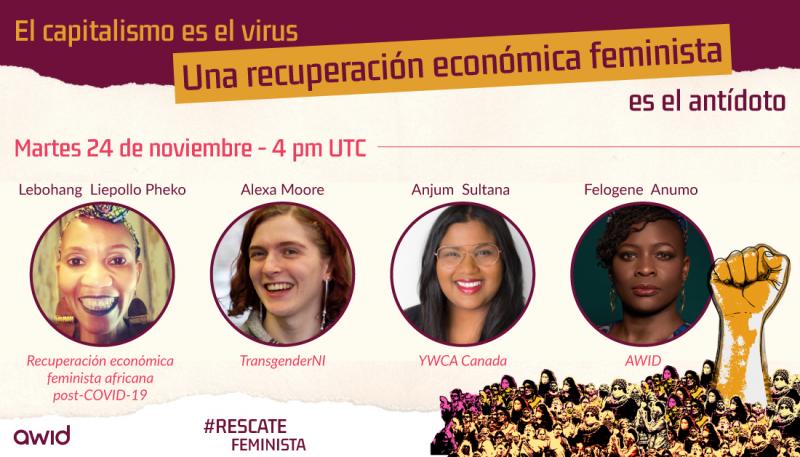 Esta pandemia plantea una crisis de salud pública sin precedentes, y potencialmente la recesión económica más profunda de la historia moderna. Las grandes empresas y corporaciones se están posicionando para un rescate financiero al estilo del obtenido en 2008. Queremos que la conversación sobre soluciones feministas siga creciendo. Únete a nosotrxs en una discusión global sobre cuatro iniciativas feministas que han diseñado los planes para un rescate y una recuperación económica feministas.