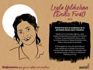 Leyla Yıldızhan (Deniz Fırat) 20 November 2020 Read in: Inglés Francés Español Category Derechos civiles y políticos Region Asia Occidental Date of death / disappearance 2014