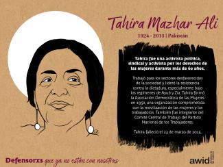Tahira Mazhar Ali 20 November 2020 Read in: Inglés Francés Español Category Derechos económicos, sociales y culturales Region Asia del Sur Date of death / disappearance 2015