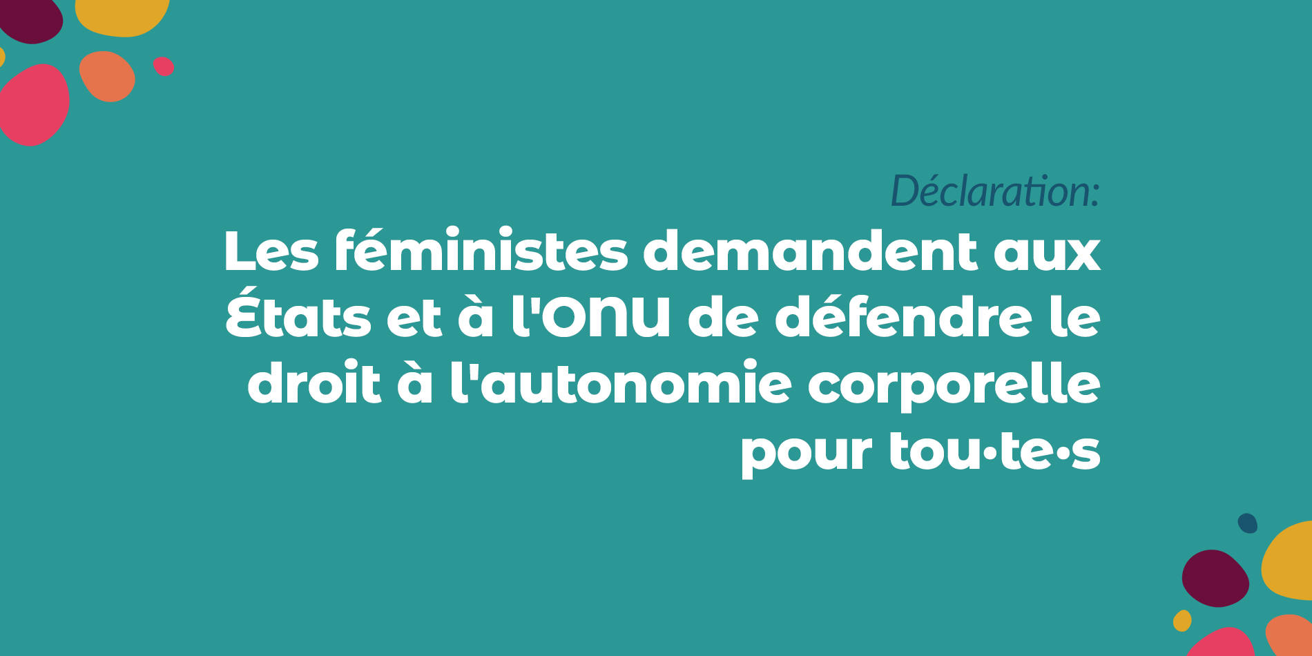 Nous rejetons la cooptation du cadre des droits humains, en particulier l'idée avancée par certain·e·s, selon laquelle la réalisation des droits des femmes trans et des femmes cis est antagonique et incompatible. Nous affirmons que nos luttes pour l'autonomie corporelle sont inextricablement liées. La réalisation des droits de tous les groupes marginalisés doit rester au cœur de toutes les actions en faveur des droits humains.