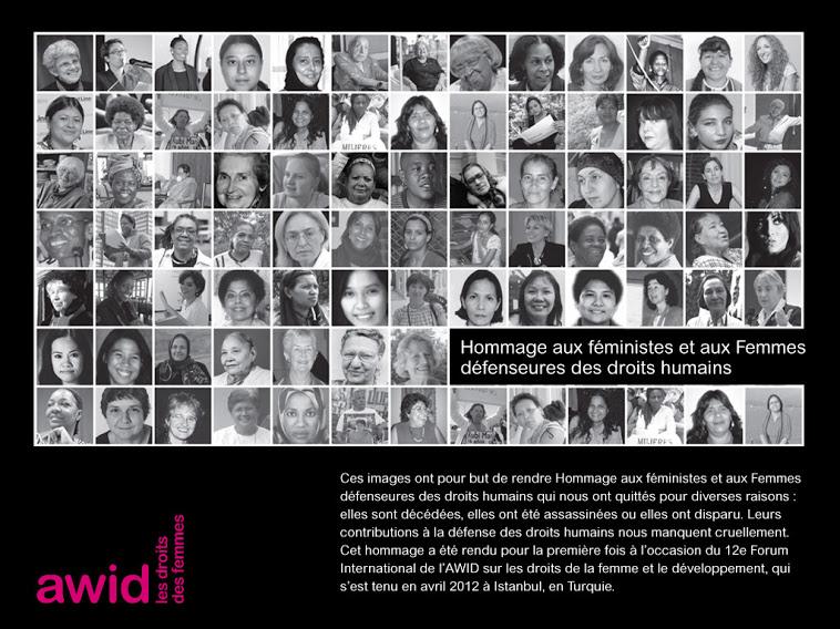 Mené à bout de dévouement, d’engagement et de passion, le combat des défenseuses des droits humains en faveur des droits, du genre et de la justice sociale a entraîné des changements dans bon nombre des communautés où il s’est implanté. L’Hommage en ligne 2015 de l’AWID aux défenseuses qui ne sont plus parmi nous célèbre la mémoire de femmes issues de différents horizons, notamment d’activistes, de femmes politiques, de pacifistes, d’auteures, d’artistes, d’avocates, de chercheuses et de journalistes. Ces défenseuses ont plaidé et œuvré en faveur des droits des femmes, des travailleurs-euses, des peuples autochtones, des personnes lesbiennes, gaies, bisexuelles et trans*, (LGBT), de la protection des terres, des droits environnementaux et des travailleurs et travailleuses du sexe; elles ont cherché à atteindre la justice légale et sociale et mené des campagnes pour le droit à l’éducation. Leur activisme témoigne des luttes collectives menées par tous nos mouvements sociaux. Cet hommage célèbre le souvenir des défenseuses des droits humains qui ne sont plus parmi nous et salue leur travail.