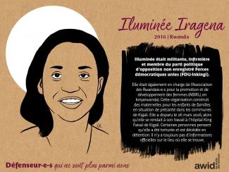 Illuminée Iragena 20 November 2020 Read in: Anglais Français Espagnol Category Droits civils et politiques Region Afrique subsaharienne Date of death / disappearance 2016