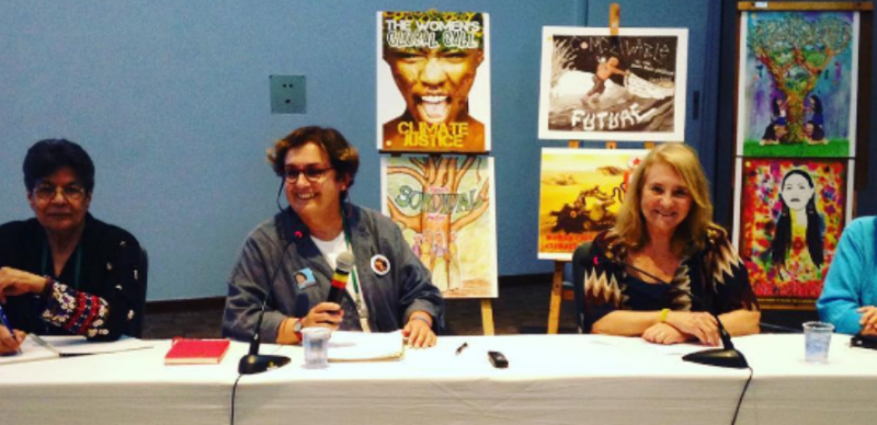 Nighat Khan, left, presenting on the panel discussion Global feminist journey(s): Reflections on cross-cultural movement strategies and current challenges at the AWID Forum