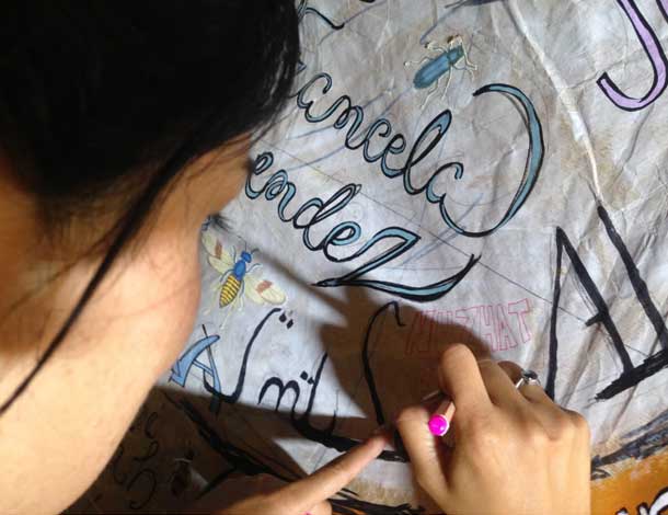 Adding my Mother’s name to the WHRD Tribute Memorial canvas at the Forum