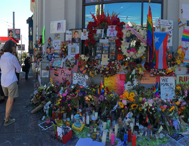 Spontaneous Orlando Memorial Shrine, Hibernia Beach Plaza, Corner 18th Street/ Castro