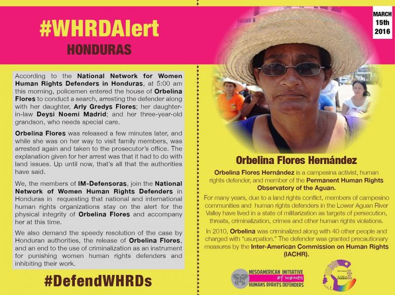 IM-Defensoras calls for the safety of WHRD Orbelina Flores