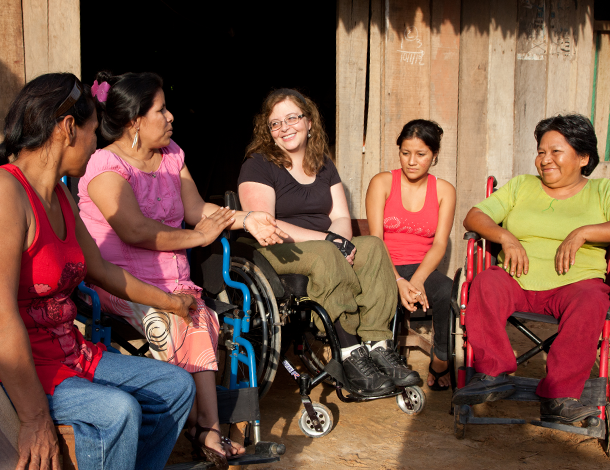 [Photo: Disability Rights Fund Program Officer, Yolanda Munoz, meets with activists with disabilities in the Peruvian Amazon.]