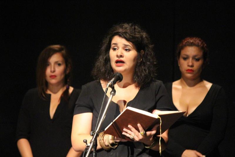 Actors Wissal Labidi, Marwa Mannai and Nesrine Mouelhi paying tribute to the late Tunisian actor and director Raja Ben Ammar at the closing ceremony of the festival. Raja Ben Ammar was director of the Mad'Art Carthage space, which hosted the first two editions of Chouftouhonna.