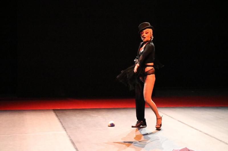 The Italian artist Senith, performing her show "Drag Queer Scio (Drag queer show)" at the festival. During her cabaret drag performance, Senith subverted the patriarchal domination that prevails in most societies and the criminalization of people with non-normative sexuality in Tunisia.