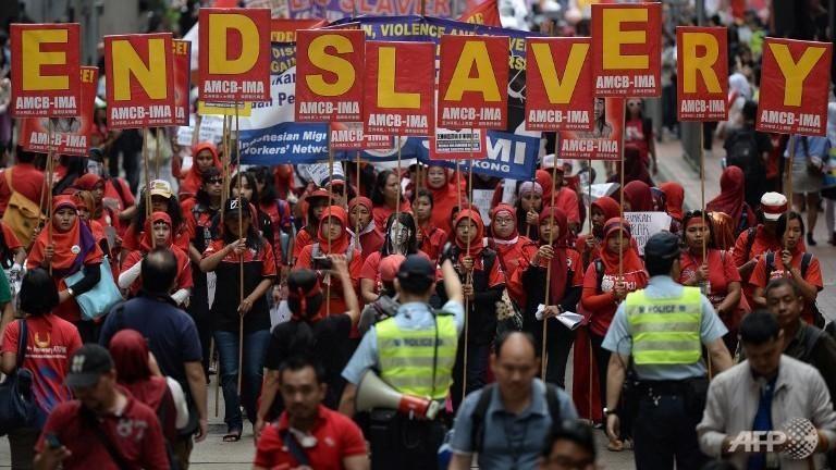 Asian Migrants’ Coordinating Body (AMNC) demonstrate to end exploitation of migrant domestic workers in Hong Kong