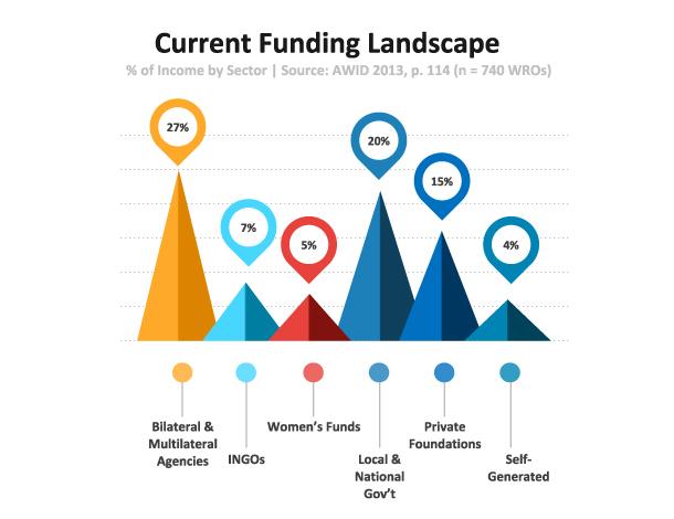 The current funding streams for women’s rights and feminist organizing can be described as falling under three pillars with a range of actors in each.