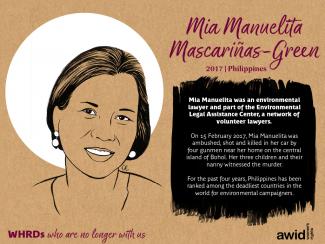 Business and Human Rights Resource Centre: Philippines: Killing of lawyer Mia Mascariñas-Green brings to 112 the number of environmental campaigners murdered in the country in the last 15 years