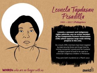 Leonela Tapdasan Pesadilla 20 November 2020 Read in: English French Spanish Category Economic, Social and Cultural Rights Region East and South East Asia Date of death / disappearance 2017 Cause of death / disappearance Killed/Asesinada/Assassinée
