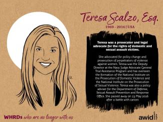 Teresa Scalzo, Esq. 20 November 2020 Read in: English French Spanish Category Civil & Political Rights Region North America Date of death / disappearance 2016 Cause of death / disappearance Natural / Muerte natural / Mort naturelle